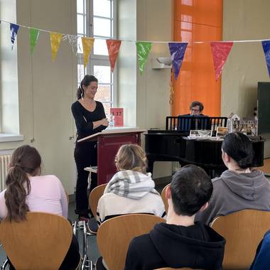 Am 27.01. fanden in der Comenius-Ganztagsschule musikalisch begleitete Lesungen des Tagebuch der Anne Frank durch die Schauspielerin Friederike Becht statt.