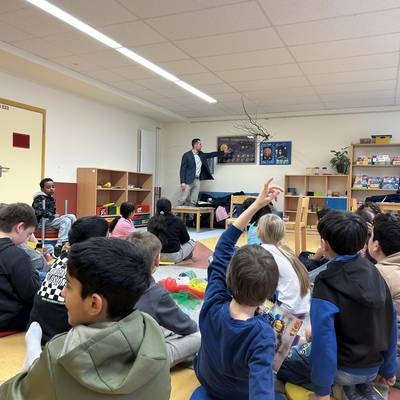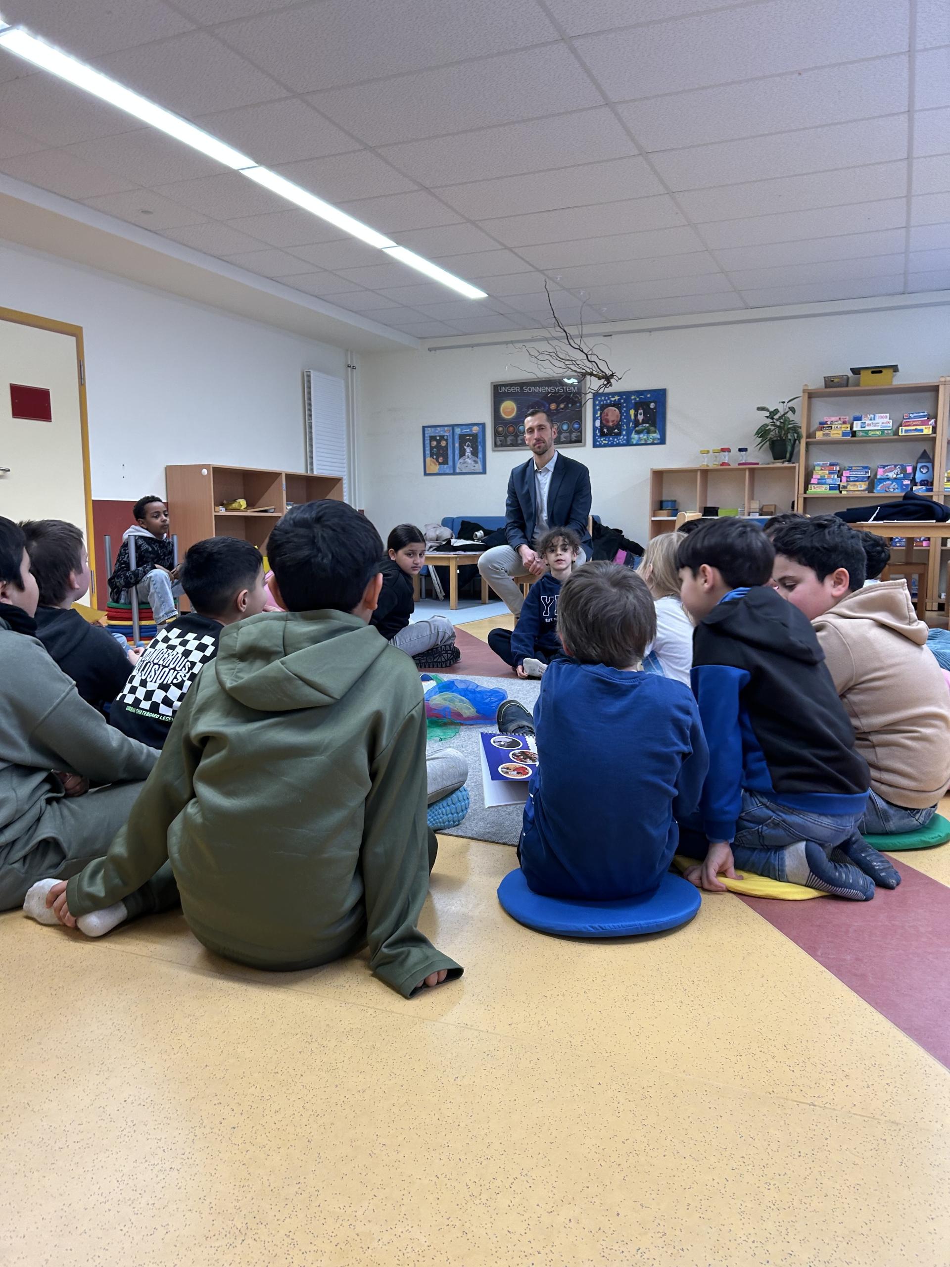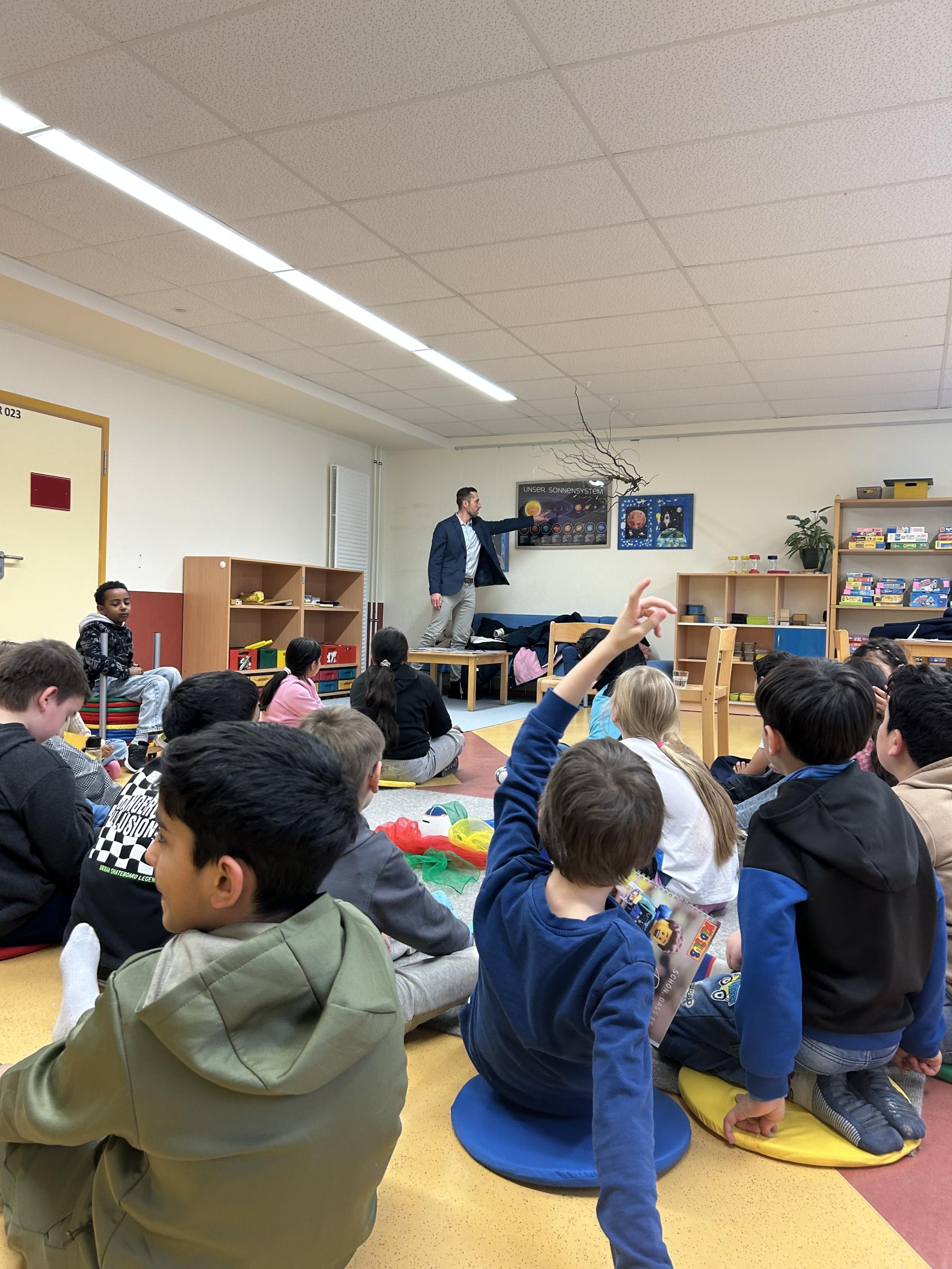26 Kinder tauschten sich mit dem Oberbürgermeister über das Leben und die Abläufe in unserer Stadt in gemütlicher Atmosphäre aus und konnten alle ihre Fragen stellen. Von „Können wir mehr Bäume pflanzen?" über „Warum ist der Spielplatz da kaputt und kannst du einen neuen bauen?" bis zu ,,Warum gibt es eigentlich Geld?"