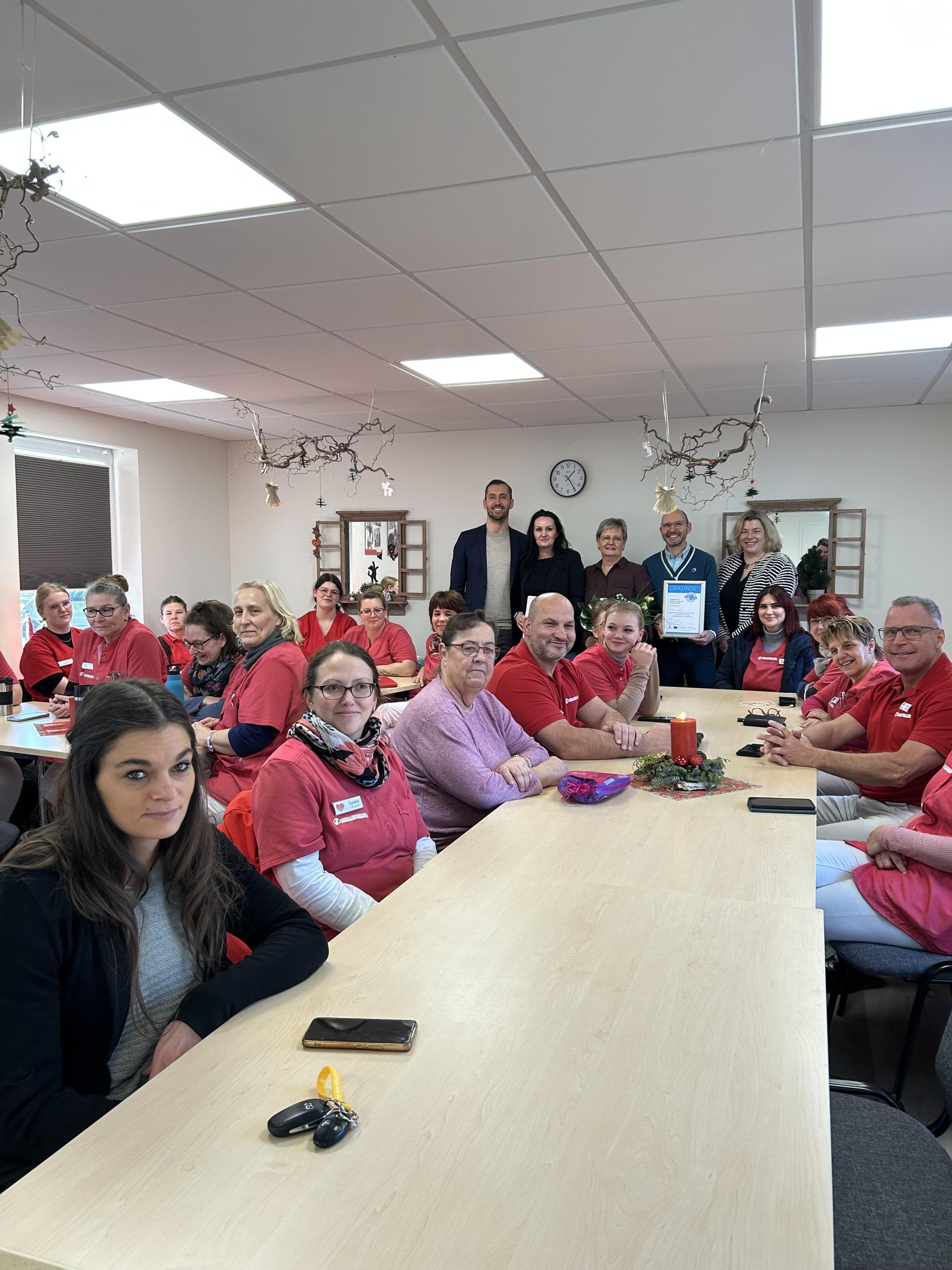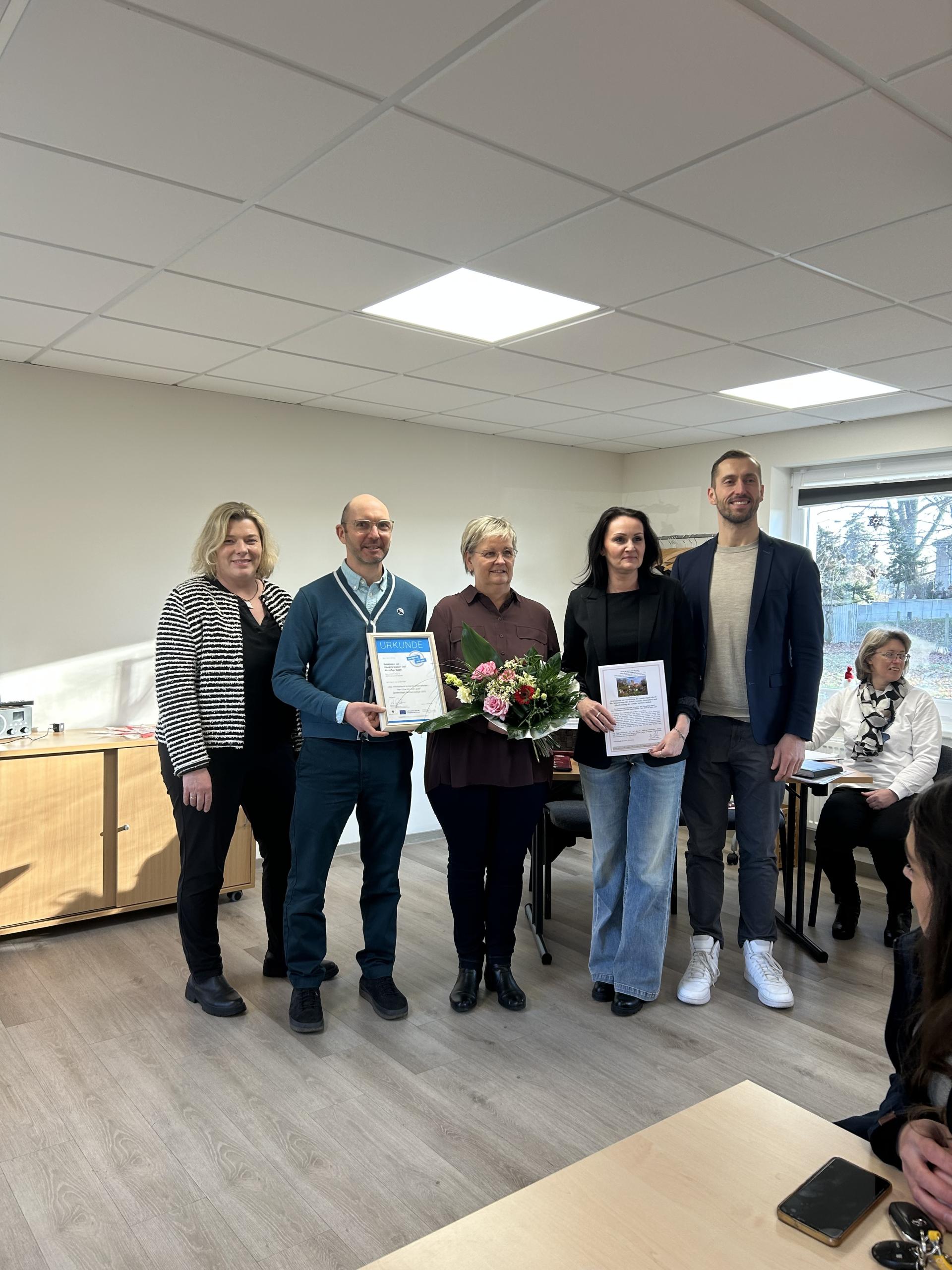 Mit 68 Mitarbeitenden setzt die Sozialstation Süd auf Zusammenhalt, Verlässlichkeit und eine Kultur des Miteinanders. Heiko Wisny von der Landesinitiative „Fachkraft im Fokus“ betont, wie entscheidend die tolle Unternehmenskultur für die Motivation und langfristige Bindung der Beschäftigten ist. Regelmäßige Dienstberatungen, gemeinsame Jubiläumsfeiern und eine offene Kommunikation prägen den Arbeitsalltag.