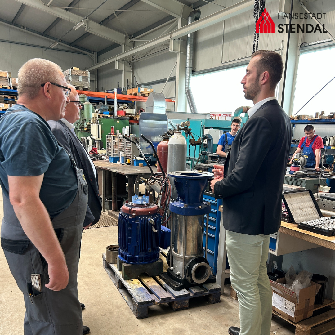 Der Oberbürgermeister der Hansestadt Stendal Bastian Sieler besuchte am 05.06.2025 die Enßlen GmbH, um die aktuelle Wirtschaftslage, die Bedürfnisse des Unternehmens und die entscheidende Beziehung zwischen Stadt und Wirtschaft kennenzulernen. Er wurde von Oliver Enßlen, Geschäftsführer, und Katrin Schmidt, Prokuristin der Enßlen GmbH, empfangen.
