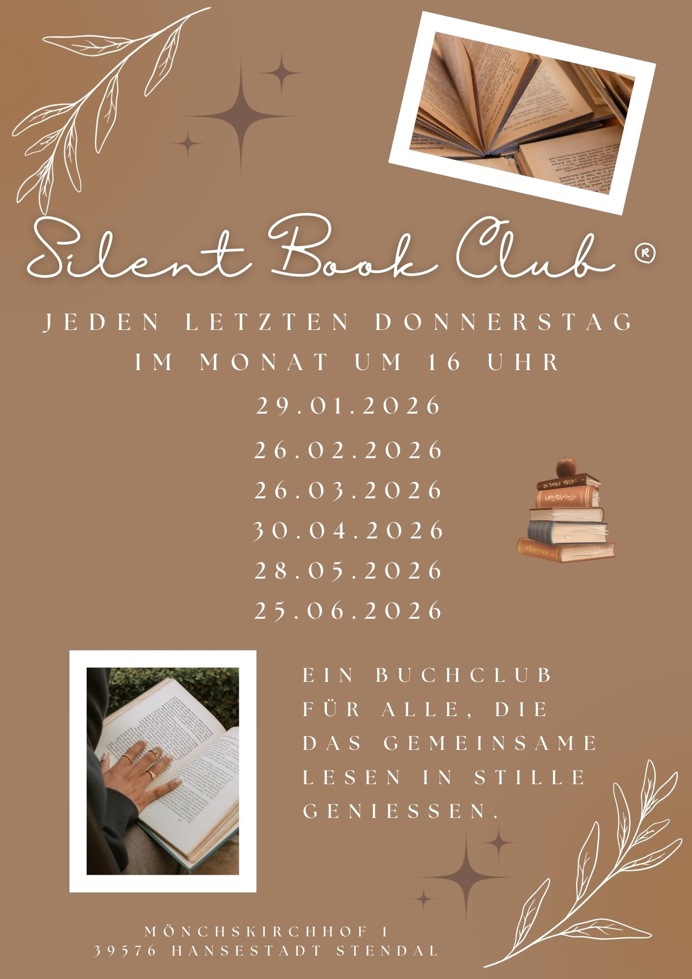Jeden letzten Donnerstag im Monat findet in der Stadtbibliothek "Anna Seghers" um 16 Uhr der Silent Book Club® statt "Ein Buchclub für alle, die das gemeinsame Lesen in Stille genießen wollen."